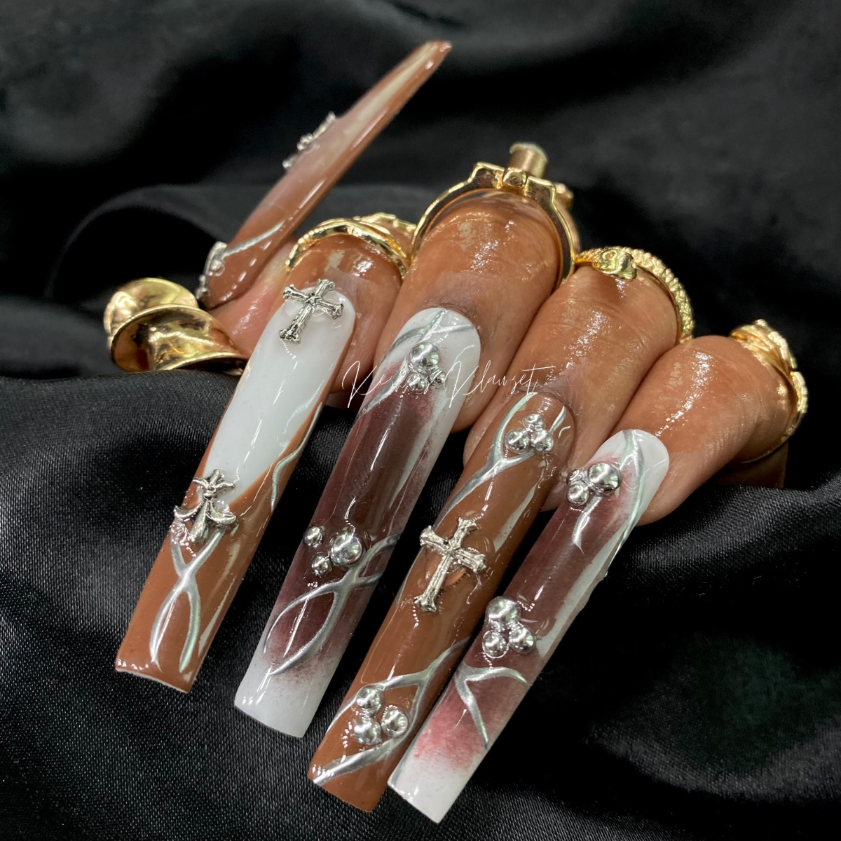 Omg I love this business. She had AMAZING customer service. She's so friendly and helpful and her skill is beautiful. I forgot to get pictures of the nails she designed for my daughters sweet 16, but they were EVERYTHING and more. We will definitely be ordering from her again. Thank you so much for the fast shipping and amazing service.